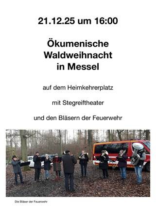 16:00 Ökumenische Waldweihnacht auf dem Heimkehrer Platz, Pfarrerin i. R. Elke Burkholz und Team. Es spielen die Bläser der Feuerwehr. Es gibt Heißgetränke. Bitte Tassen mitbringen.