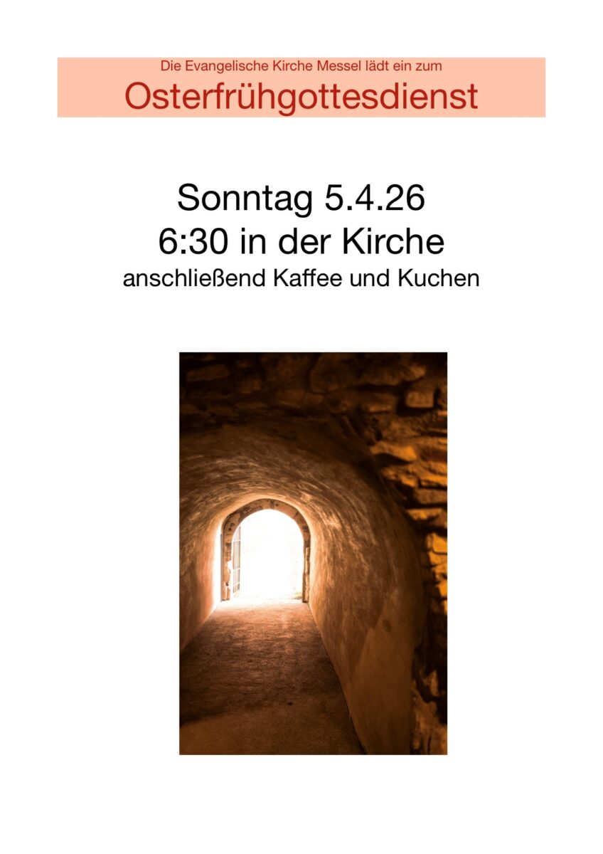6:30 Osterfrühgottesdienst des Pfarrerehepaars mit Dialogpredigt mit anschließendem kleinen Osterfrühstück mit Kaffee und Kuchen